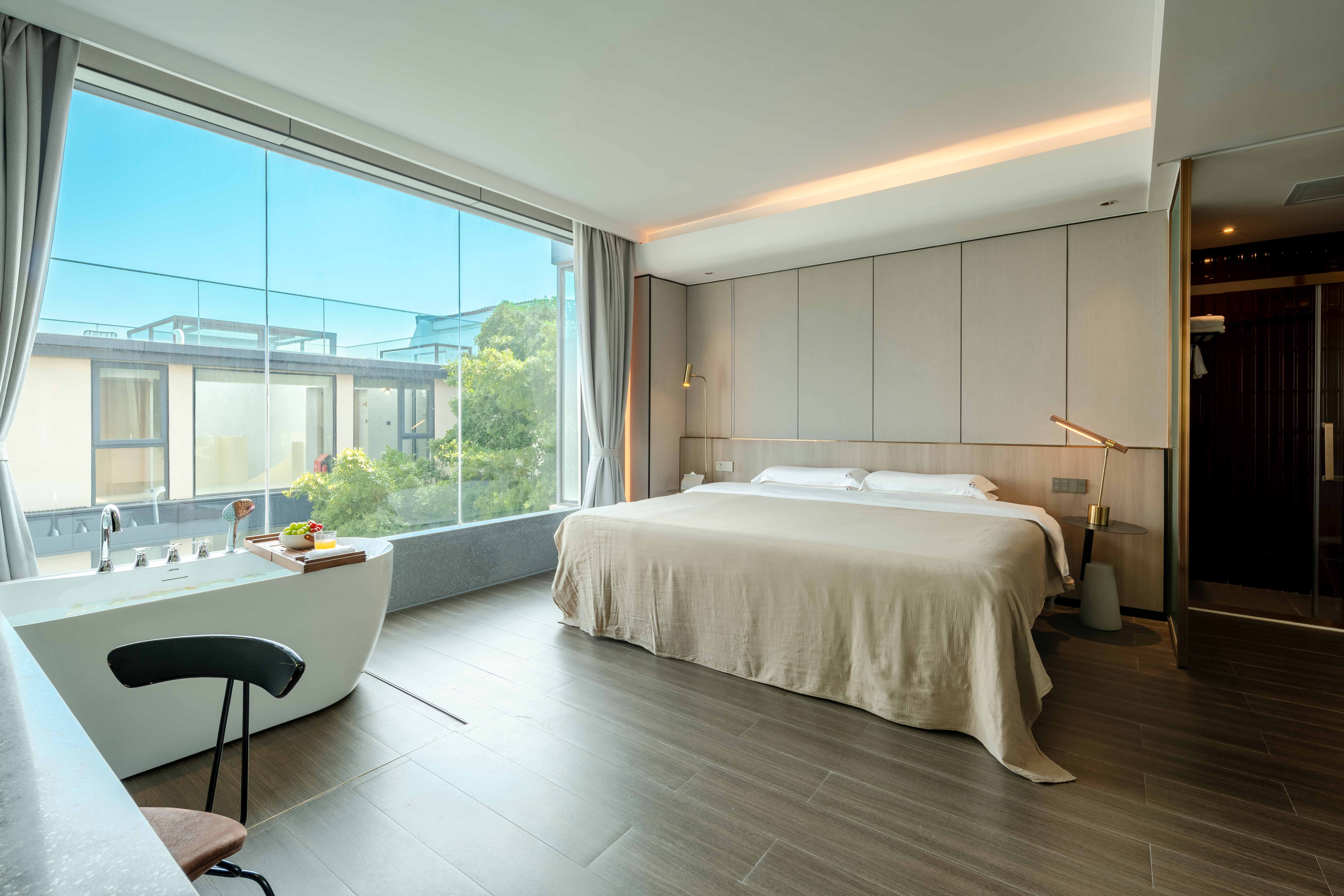 豪华院景浴缸大床房(小冰箱+梦百合床垫+全屋智能)